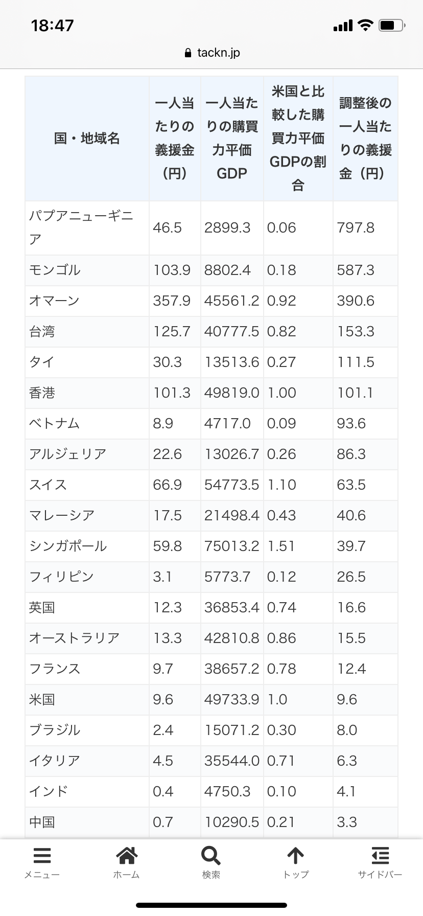 一人あたりにしたら台湾ブッチギリでやばいわ