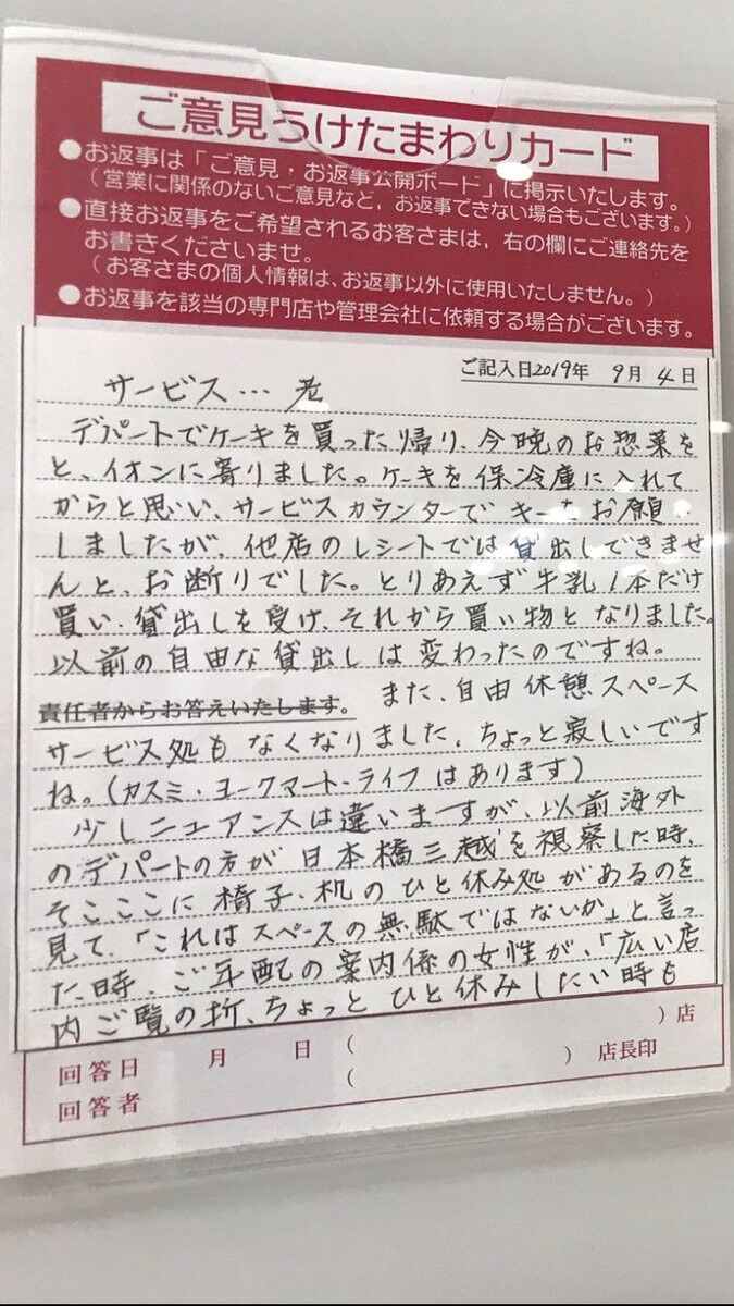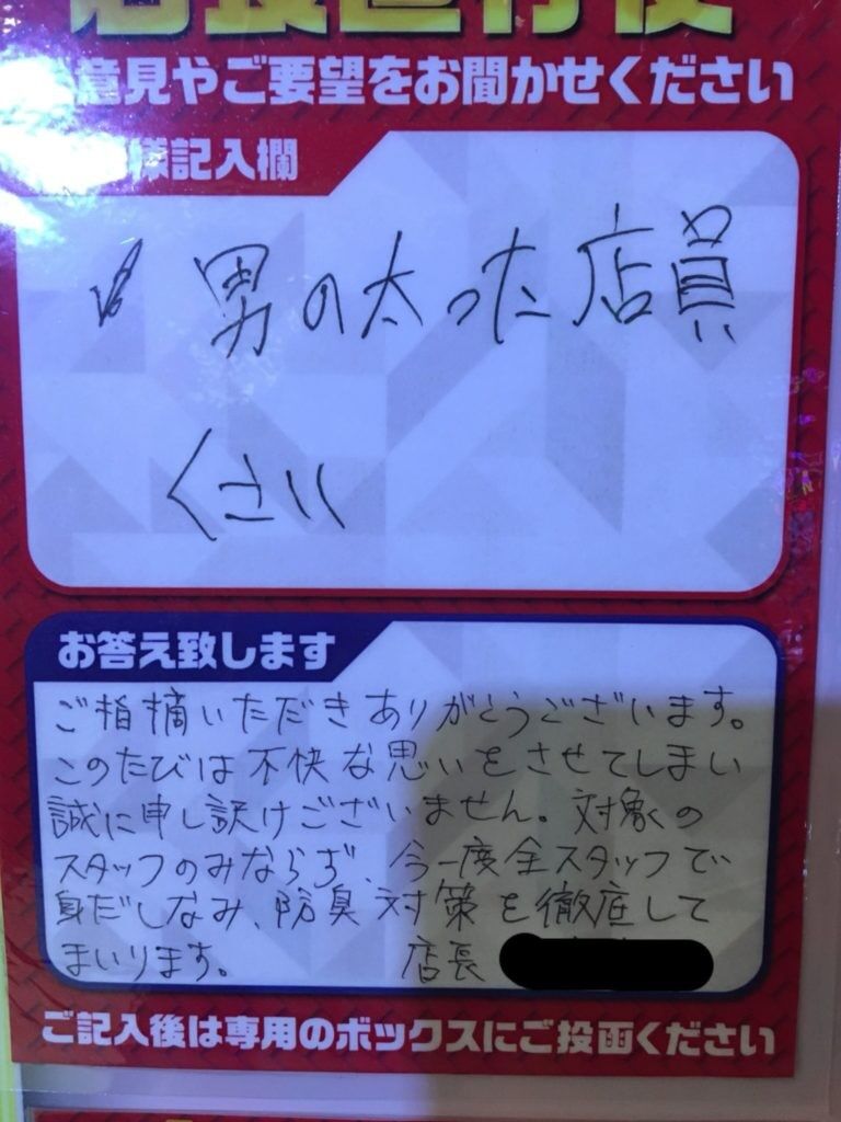 顧客アンケートでの投書としてミーティングで全体に伝えた