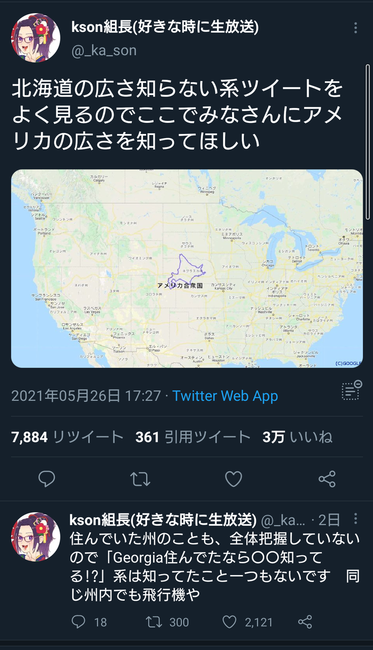 北海道はアメリカ1州程度の大きさあるってことやろ