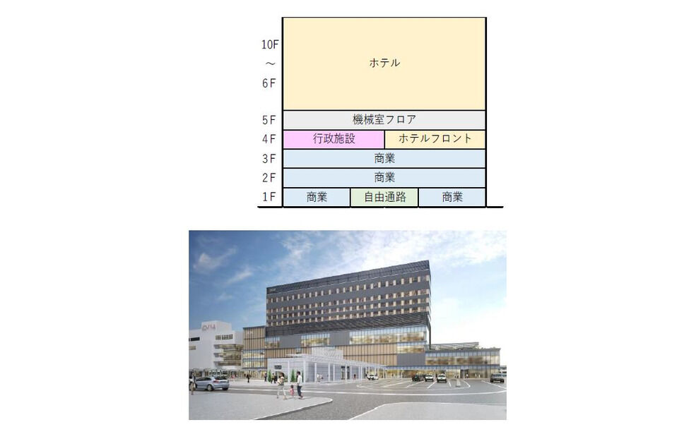 上はホテルで下は老朽化した美術館が移転するから商業施設は元の駅内の施設と変わらないだと