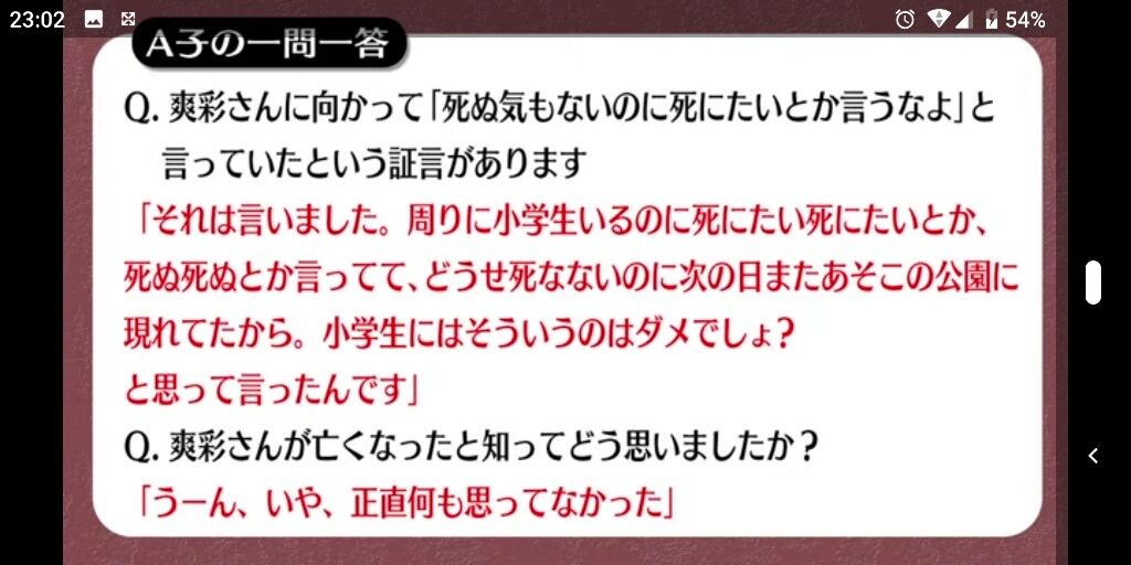「当然悪いことではあるので、指導はしていました。今回、爽彩さんが亡くなった事と関連があると言いたいんですか? それはないんじゃないですか」