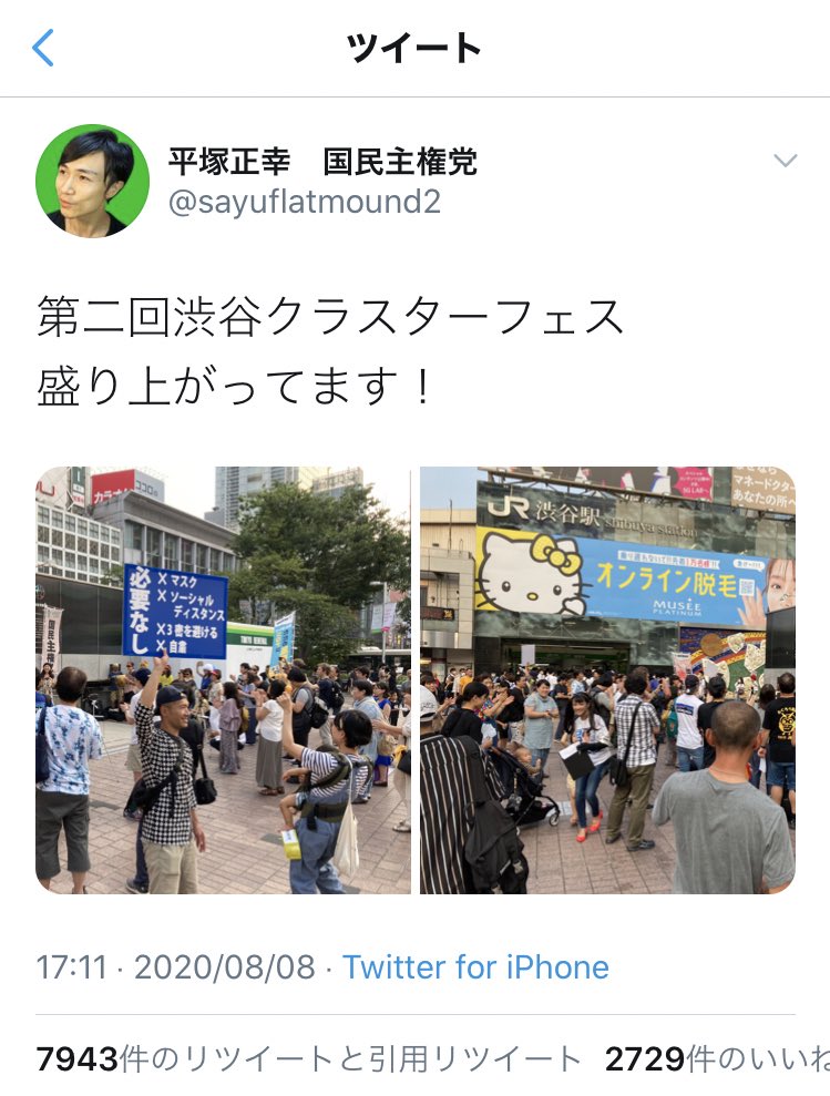 マスク無しの集会やったんや