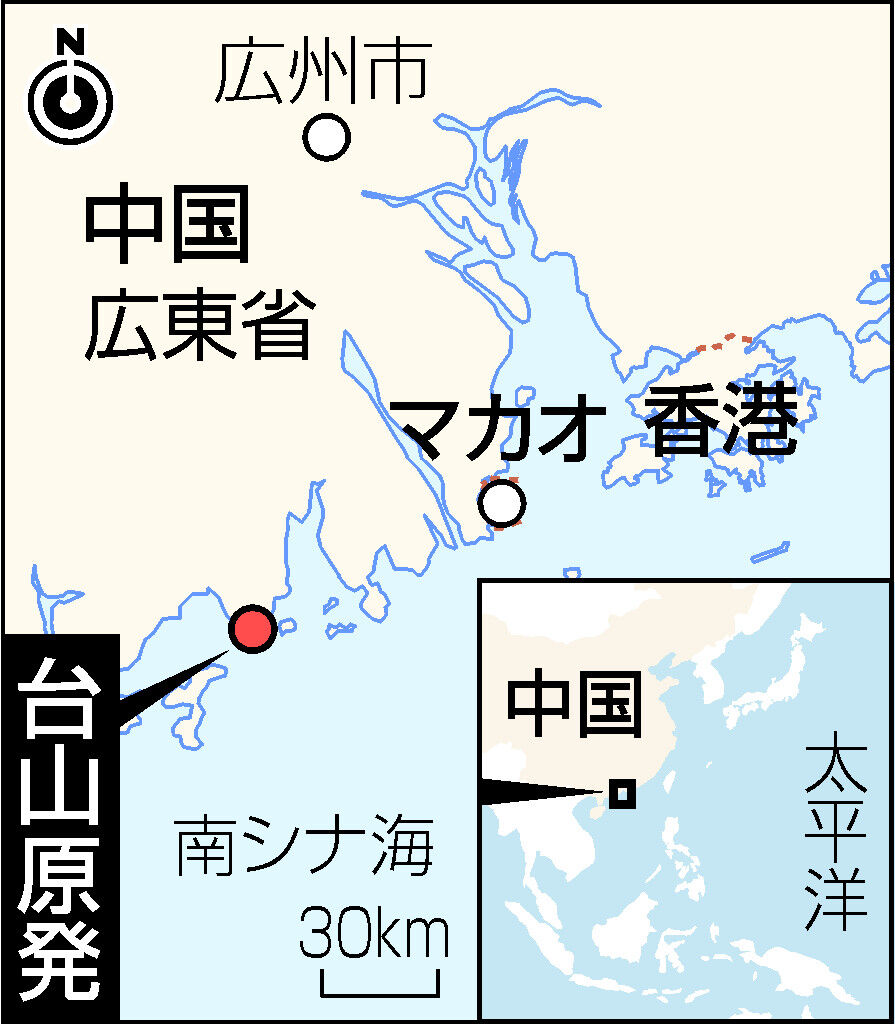 中国広東省の台山原発から放射性希ガスが大気中に放出されたと報じられた問題で、中国生態環境省は16日、同原発の燃料棒の破損により冷却材中の放射性物質の濃度が上昇したと発表した。