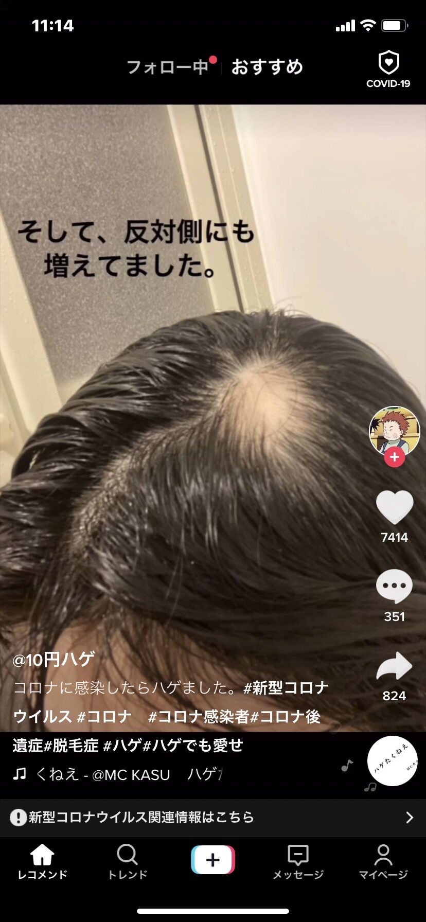 コロナハゲは最初の小さいハゲだけでハゲが大きくなっていったのはストレスで余計ハゲたんやろ
