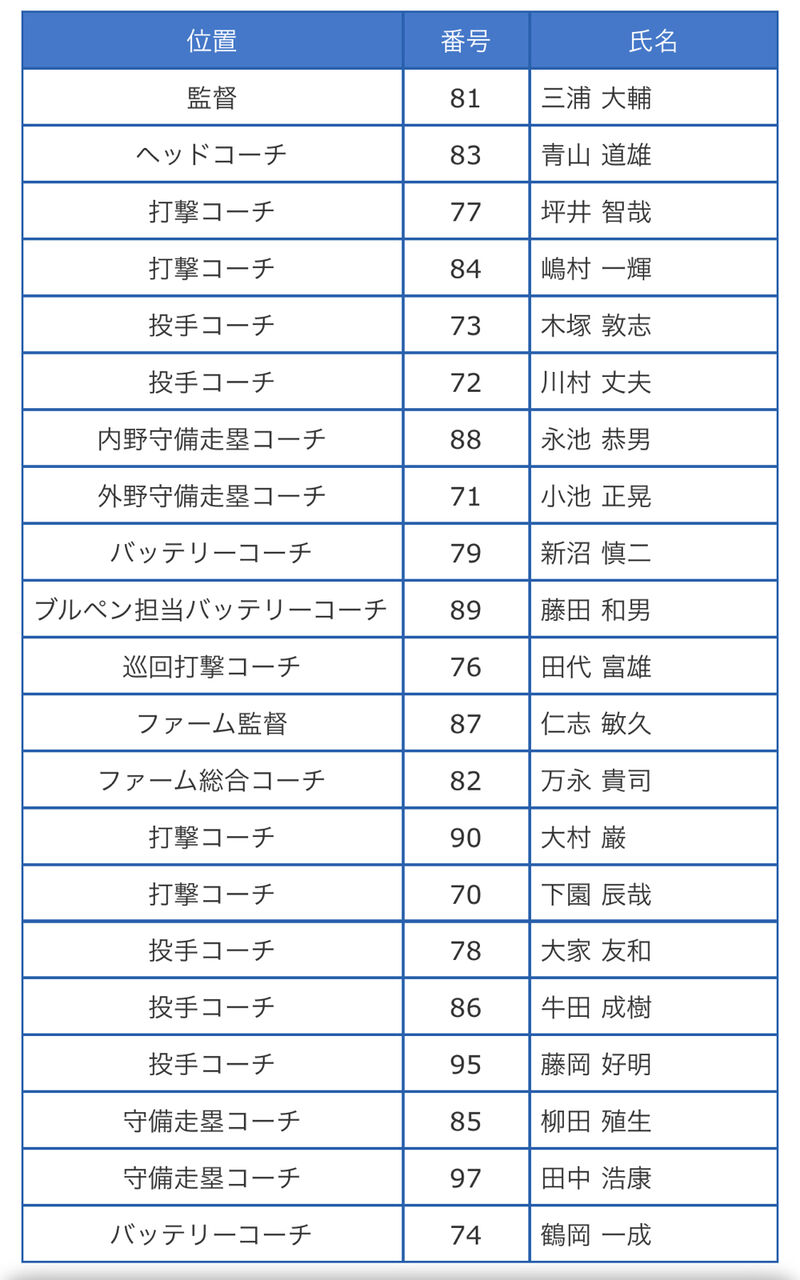 ラミレス時代の首脳陣