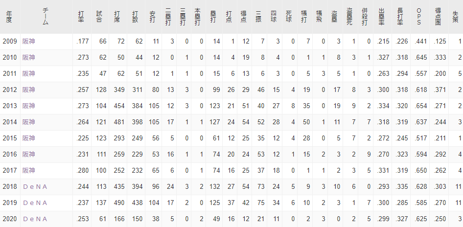 打撃成績なんも変わっとらん