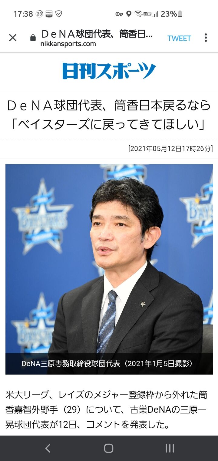米大リーグ、レイズのメジャー登録枠から外れた筒香嘉智外野手(29)について、古巣DeNAの三原一晃球団代表が12日、コメントを発表した。