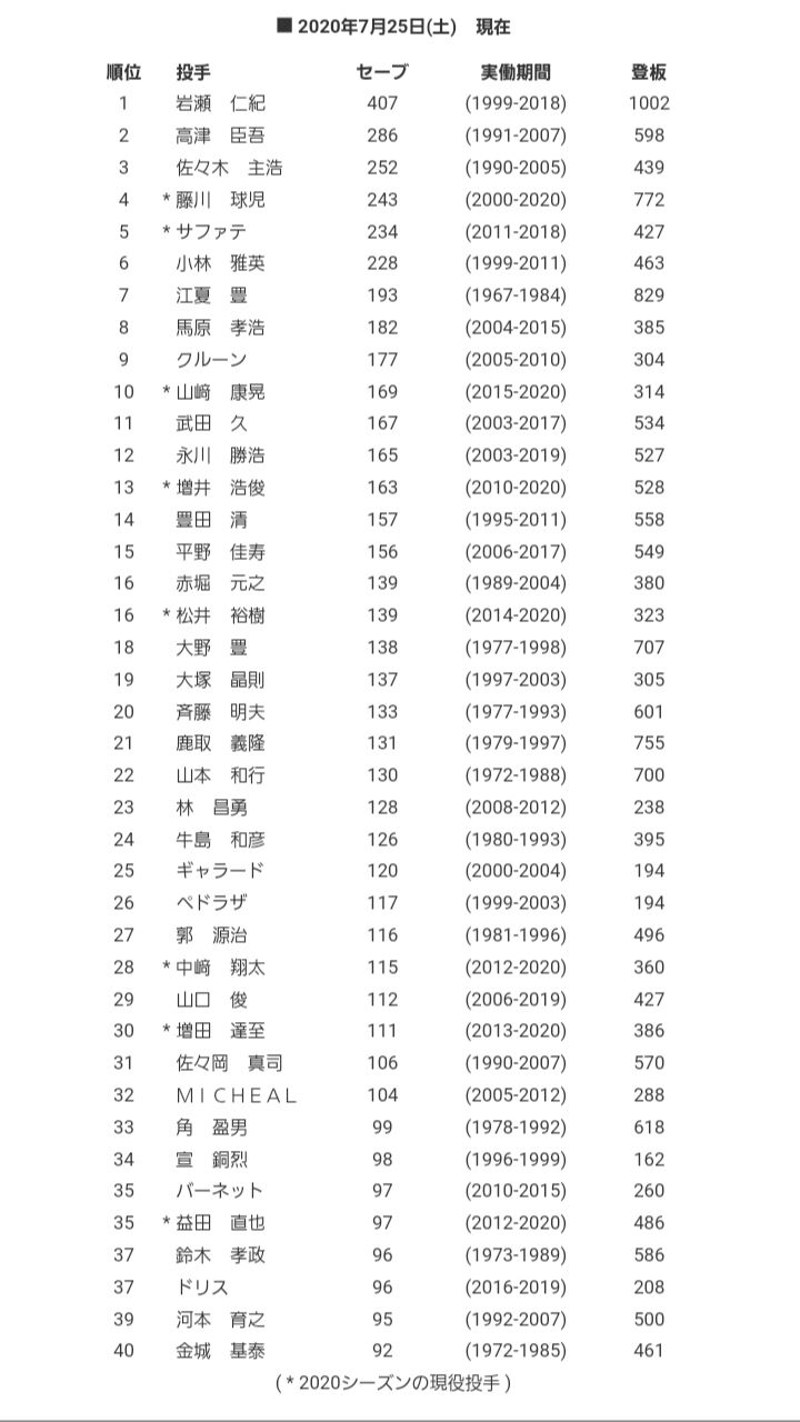 250セーブ達成 3人(岩瀬 高津 佐々木)