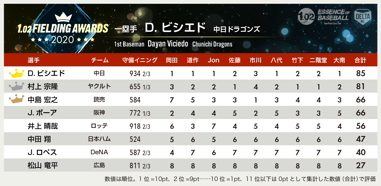 せっかくの打撃での貢献が守備でのマイナスで帳消しになるようなケースもあり、一塁手の守備は決して無視できるようなものではありません。