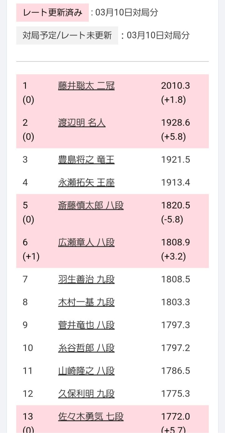 藤井だけ3つも入ってるの凄すぎ