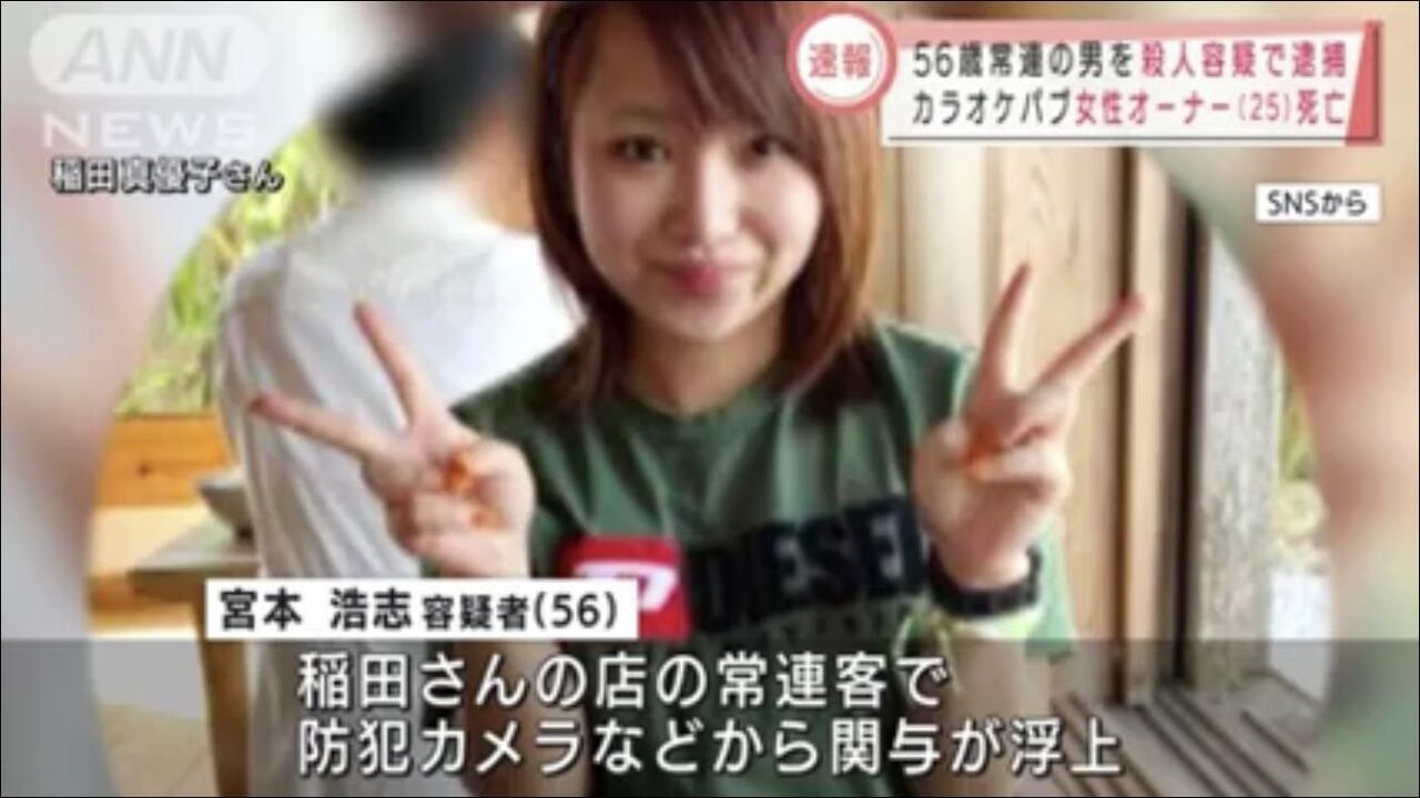 大阪市北区天神橋4のカラオケパブで経営者の稲田真優子さん(25)の遺体が見つかった事件で、大阪府警は18日、稲田さんを殺害した疑いが強まったとして、店の常連客で会社員の宮本浩志容疑者(56)=兵庫県西宮市=を殺人容疑で逮捕した。