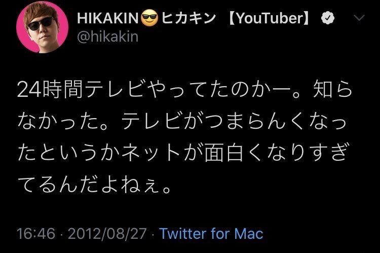 やっぱYouTubeよりテレビなんやろなHIKAKINの価値観じゃ当然やけど