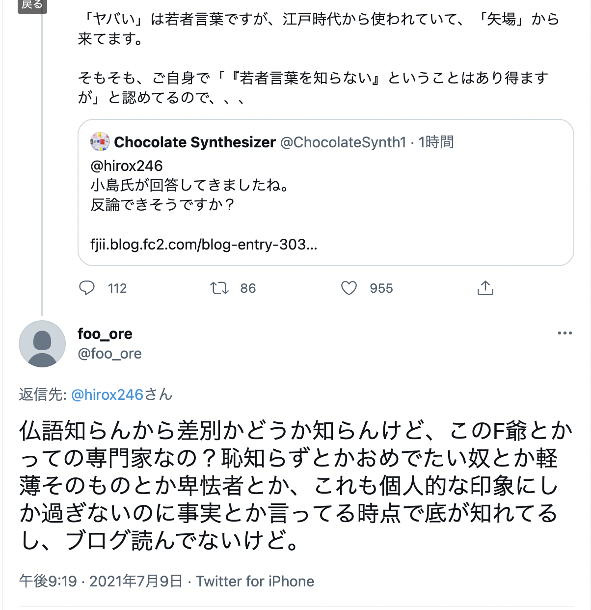 素性を隠していない人物からこれほど愚かな言いがかりをネット空間に撒き散らされたのは初めてです。