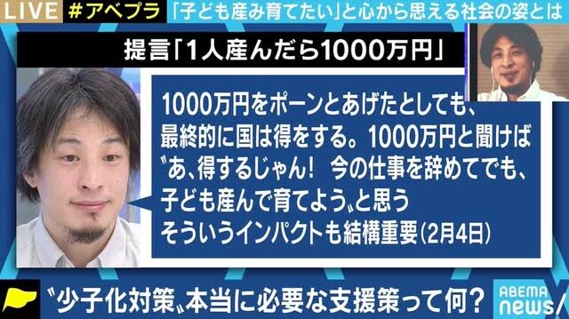 まあこれが実現するかどうかは置いといて1000万もらえんならガキ作るわな