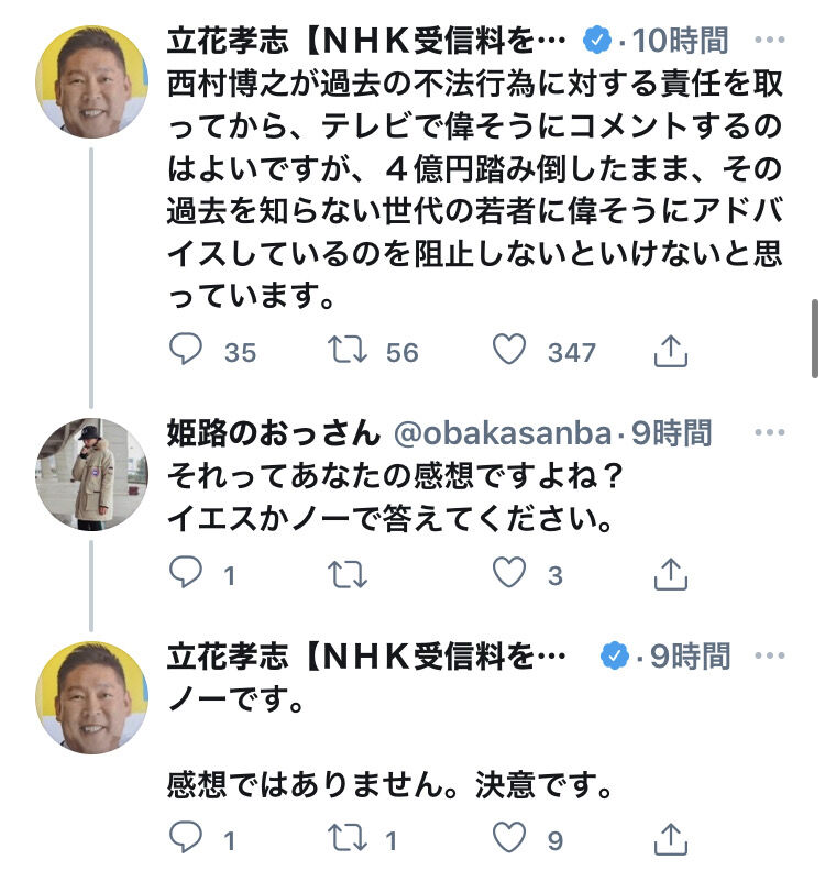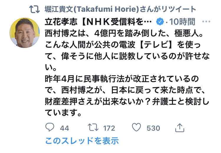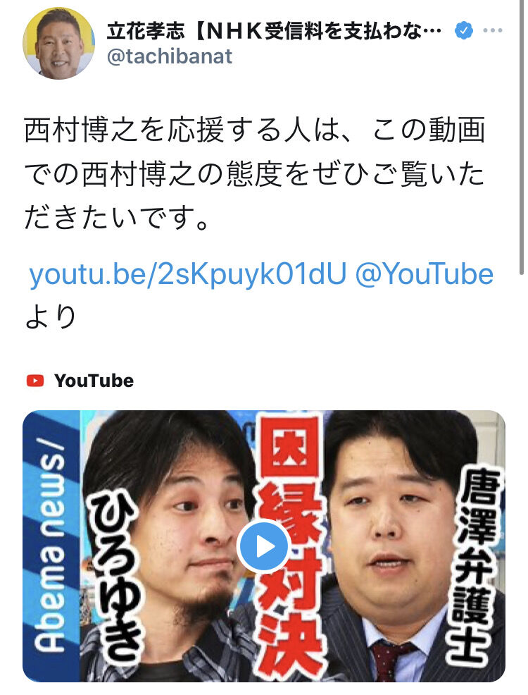 ひろゆきも立花も見せ物になるのをなんとも思ってない連中やからまともに関わったらあかんで
