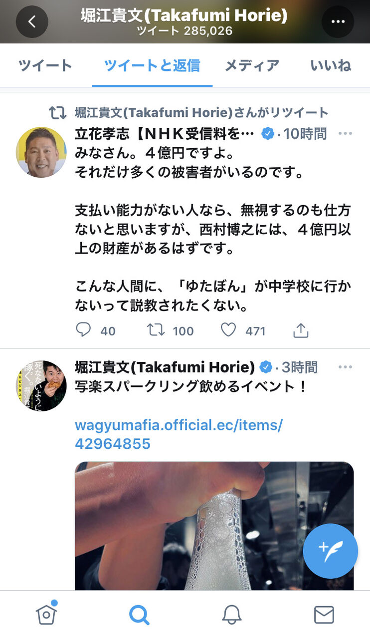 堀江は立花と西野、箕輪、テキーラの人とかとは飲みに行く仲だけど、ひろゆきとはプライベートでは全く会ったことないし仲良くないらしい