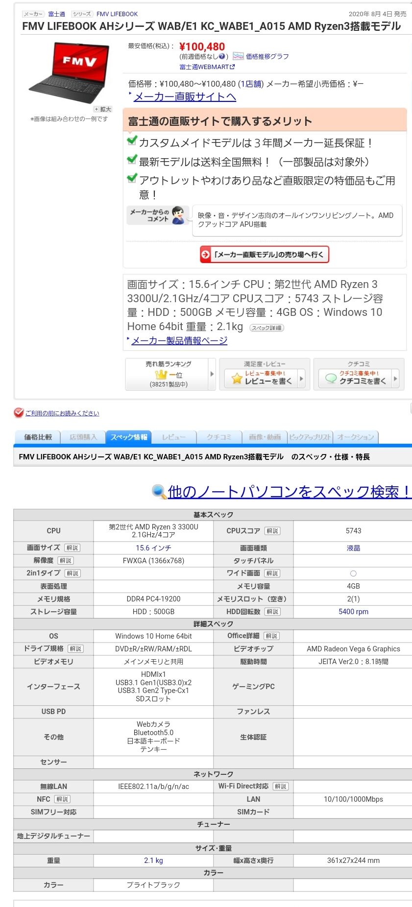 これより安い4500Uがdellから出てたけど、売れ過ぎて販売休止してて草生えた