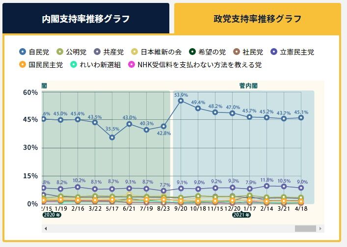 支持する政党はない 42.4% ↓-4.6pt