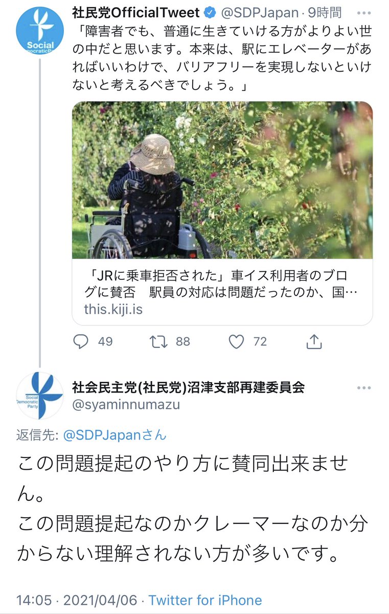社民党がJRに謝罪を求めている