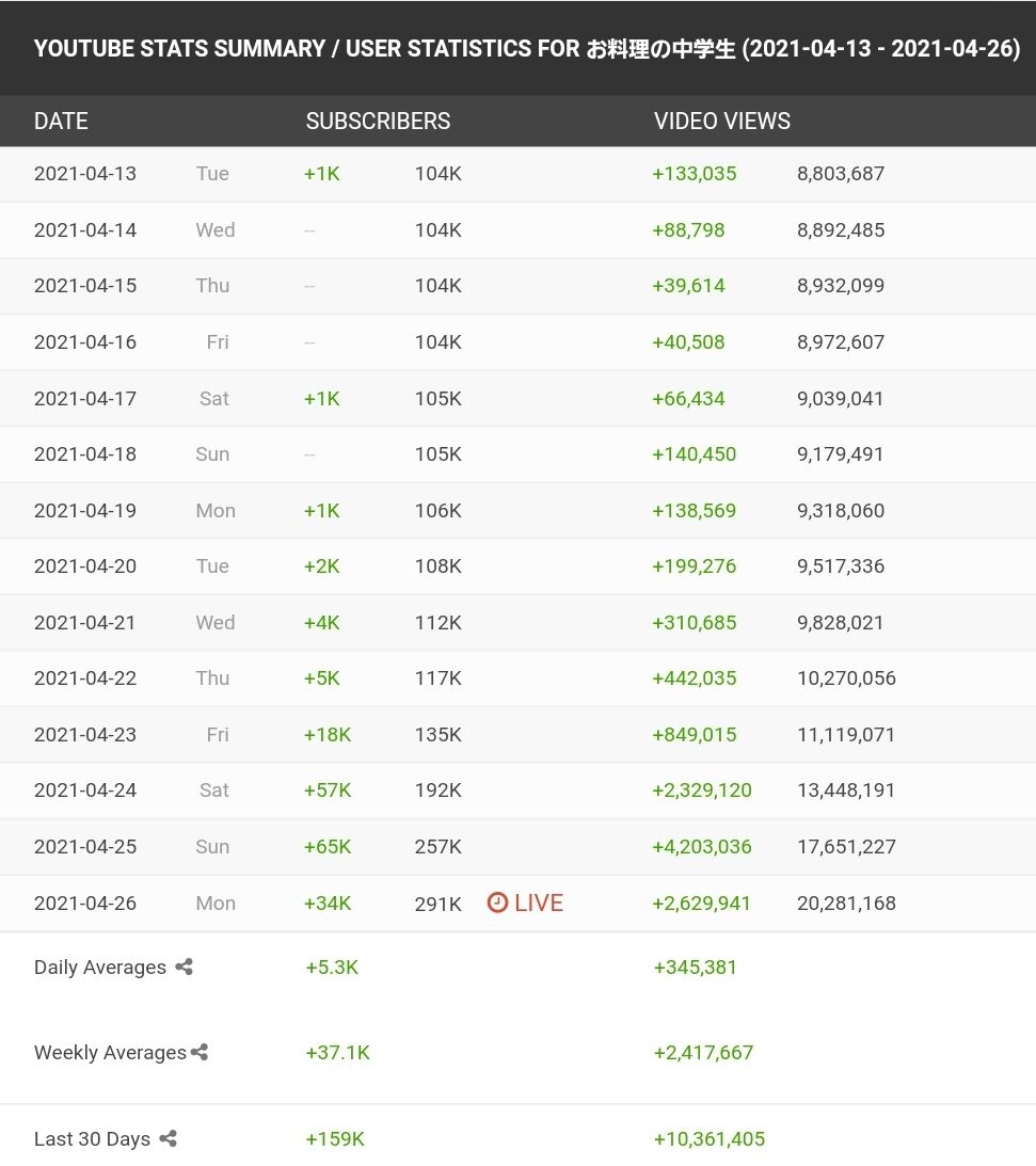1日の再生数平均34万回