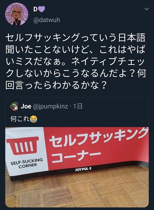 ただの和製英語かと思ったら海外では超弩級下ネタなのか………セルフサッキング……