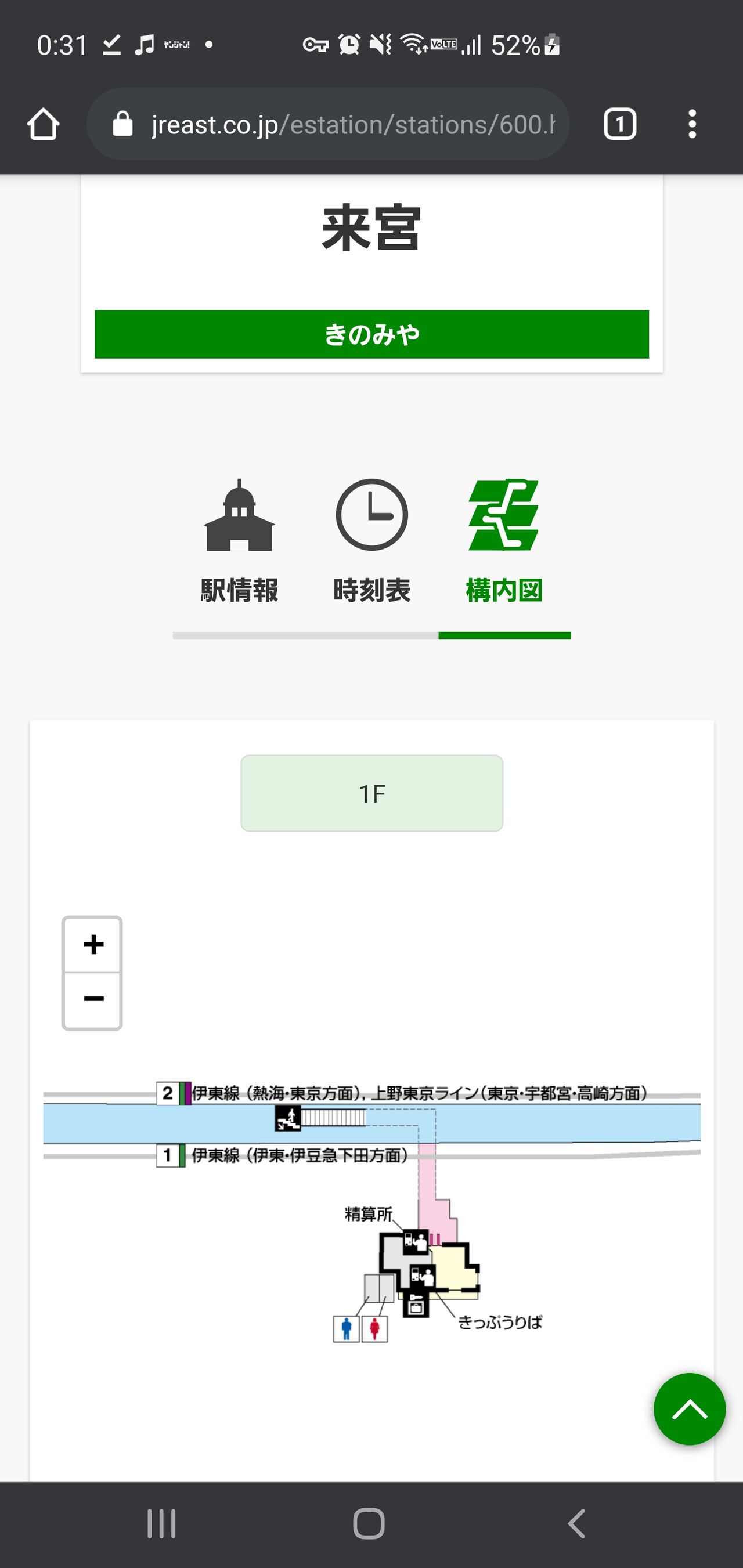 事前にインターネットで、来宮駅の構内図を確認し、1Fの図の表示しかなく、上りホーム側に階段が。 下りなら階段なしなのかな、と思い、行ってから考えようとなりました。