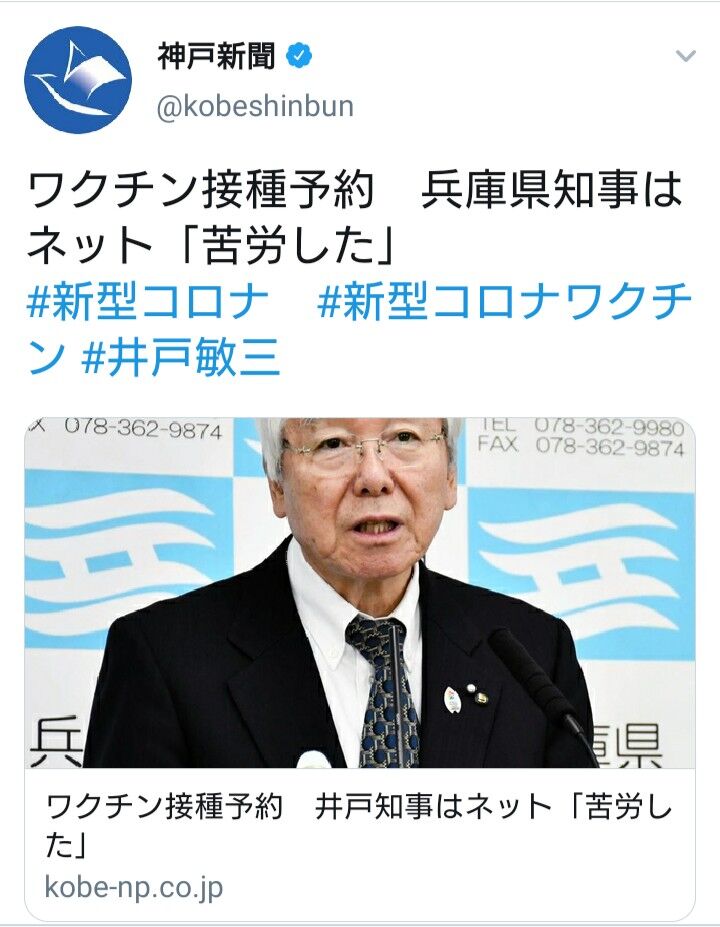 兵庫県神河町の山名宗悟町長(62)が、65歳以上の高齢者でも医療従事者でもないにもかかわらず、新型コロナウイルスのワクチン接種を受けていたことが12日、分かった。山名町長は「廃棄予定だった分を有効活用し、危機管理のために打った」と説明している。