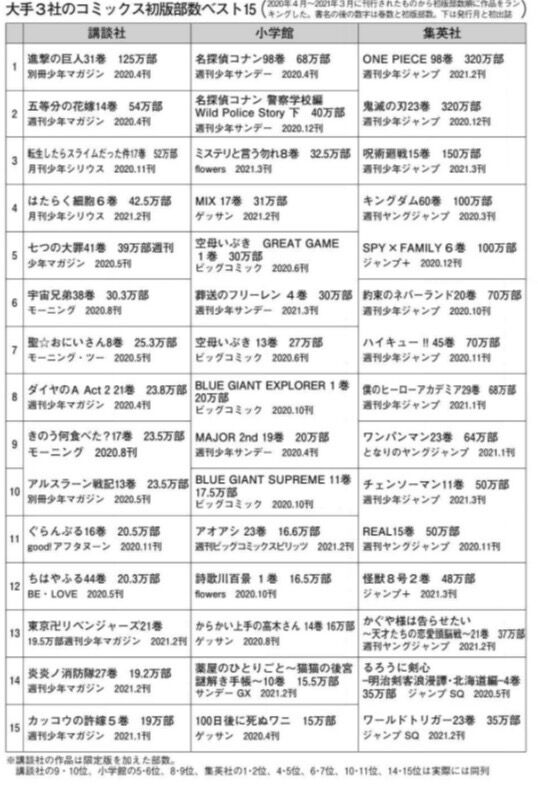 ・初版395万部(400万部以上はワンピ以外超えられない)