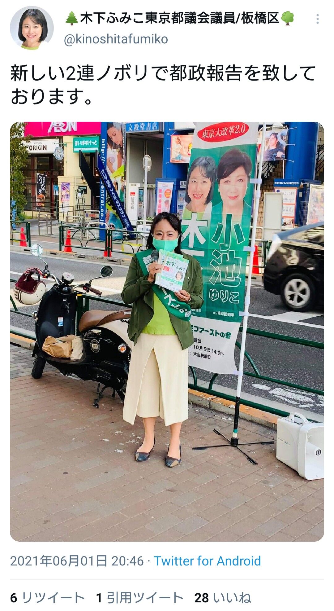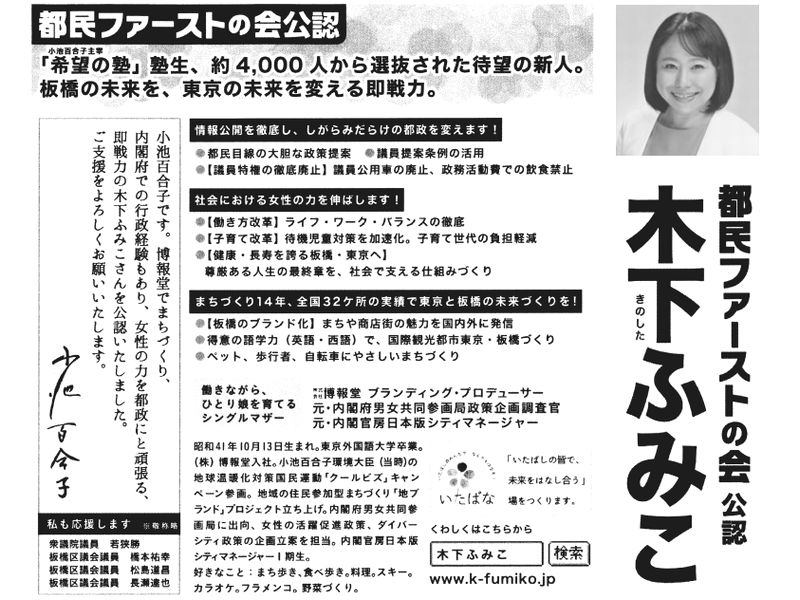 大事な点なので記載しておく。告示日直前の6月21日に志村坂上でご自身が街宣車を運転しているのを、私はハッキリと見た。私は自分の街宣車のマイクでご挨拶をしたが無視されたので、良く記憶している。