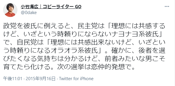 自民の方が頼りになると言ってるしこいつ左翼ではないやろ