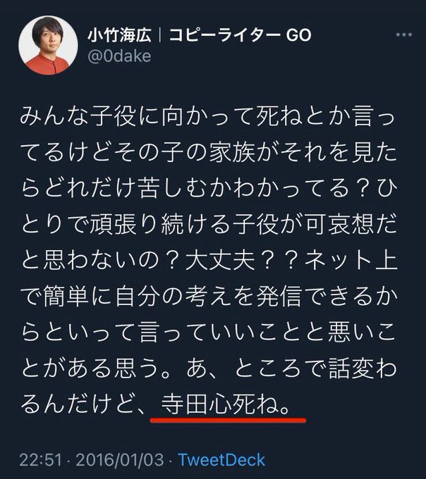 冷静に考えると当時7才の子供に死ねって言ってるっていうとんでもない誹謗中傷だから草