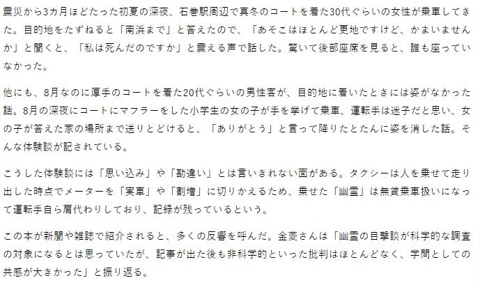 「私は死んだのですか」運転手に聞いたタクシー客 被災地と幽霊の深い関係