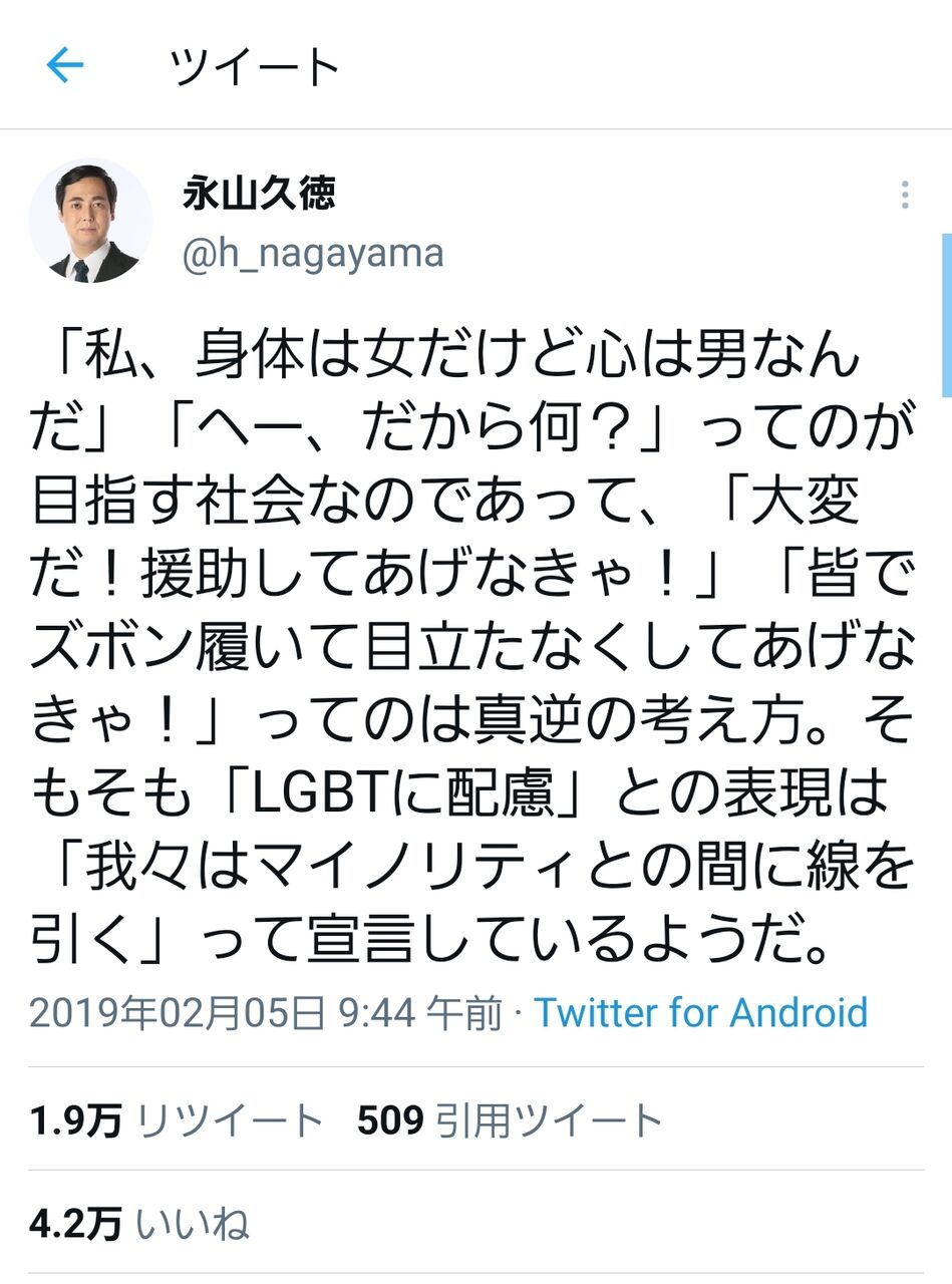 この人は普段から女性の格好して仕事してるんやから周囲に受け入れられてるやん