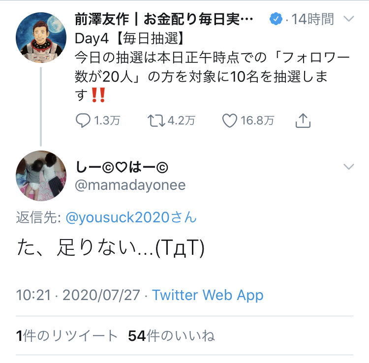 2020お年玉企画→スタート直後からリプ欄に感動話書く奴続出→前澤、後出しで今年は完全ランダムとか言い出す