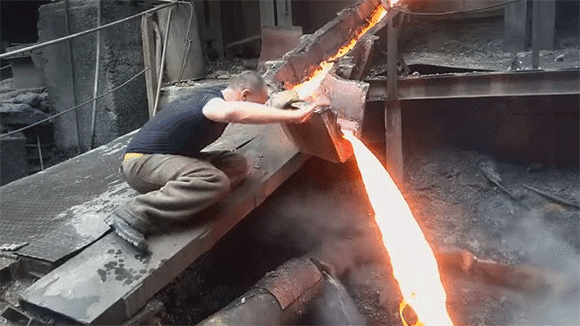 ワイが見たのは金属とかしてドロドロに燃えた真っ赤な液体金属を触ってたわ