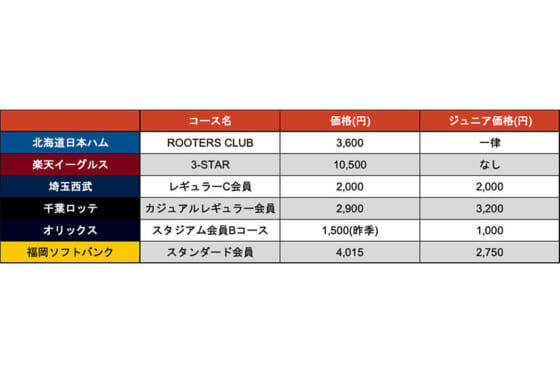 ロッテは正確にはレギュラー会員(3900円)に対してジュニア会員(3200円)