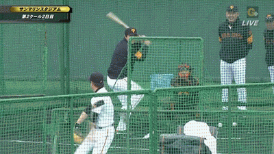 野手のフリー打撃の前に打撃投手の肩慣らしの時間を見計らって打席に入り、元三冠王の打棒を惜しみなく披露。たった7スイングながら、右翼ポールをかすめてわずかに右にそれた当たりを含めて柵越え3発を見舞った。