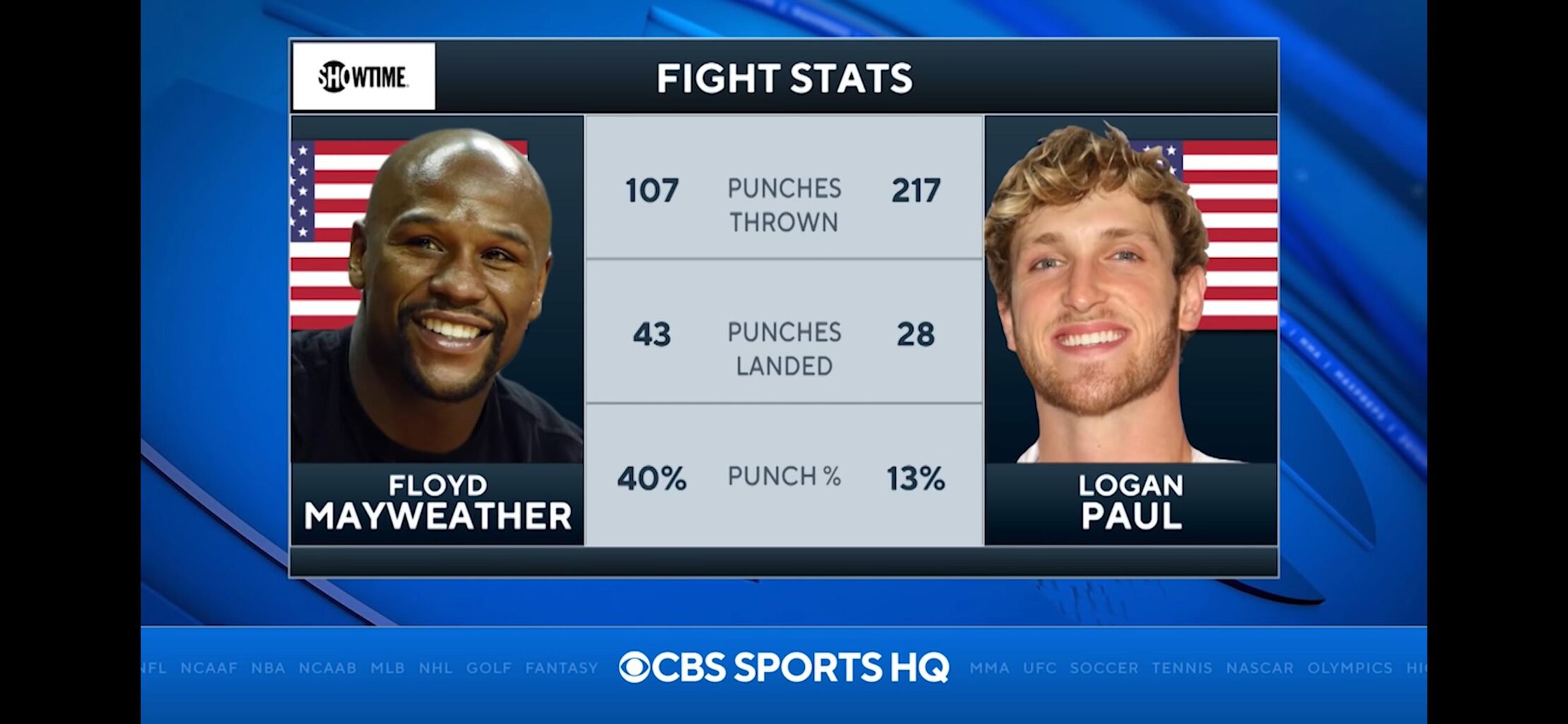 メイウェザー:107回のパンチを出して43発ヒット