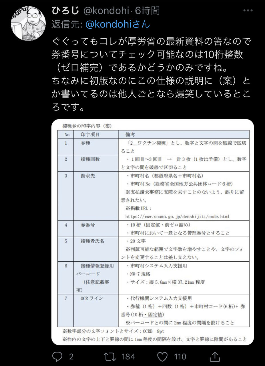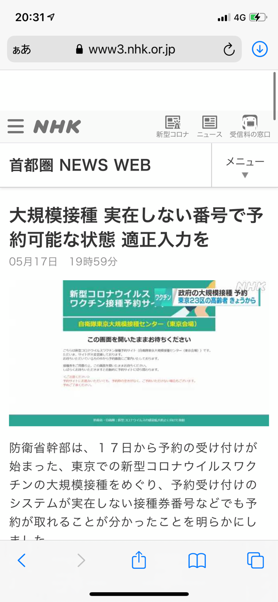 新型コロナウイルスワクチンの大規模接種東京センターの予約システムをめぐり、架空の市区町村コードなどでも予約受付が完了してしまうことが報じられている。