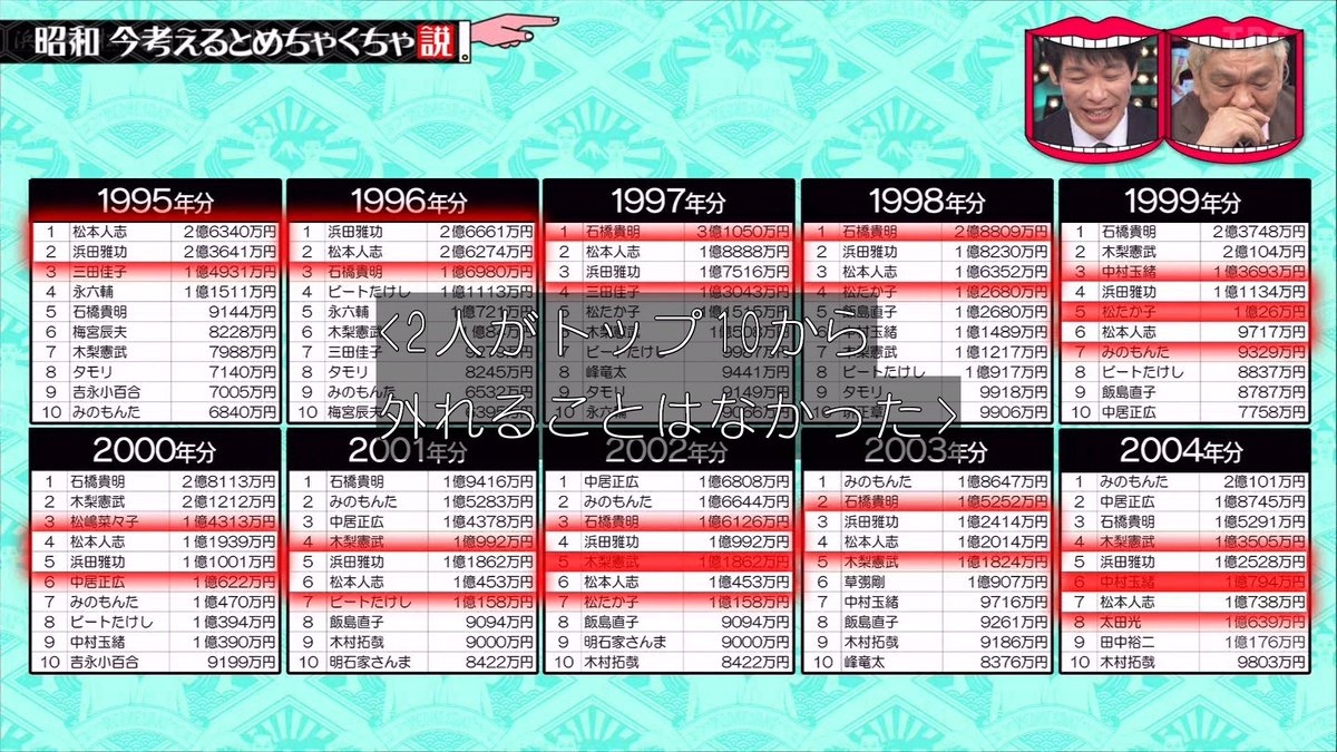とんねるずのバシタカも全盛期の時より稼いどるらしいな