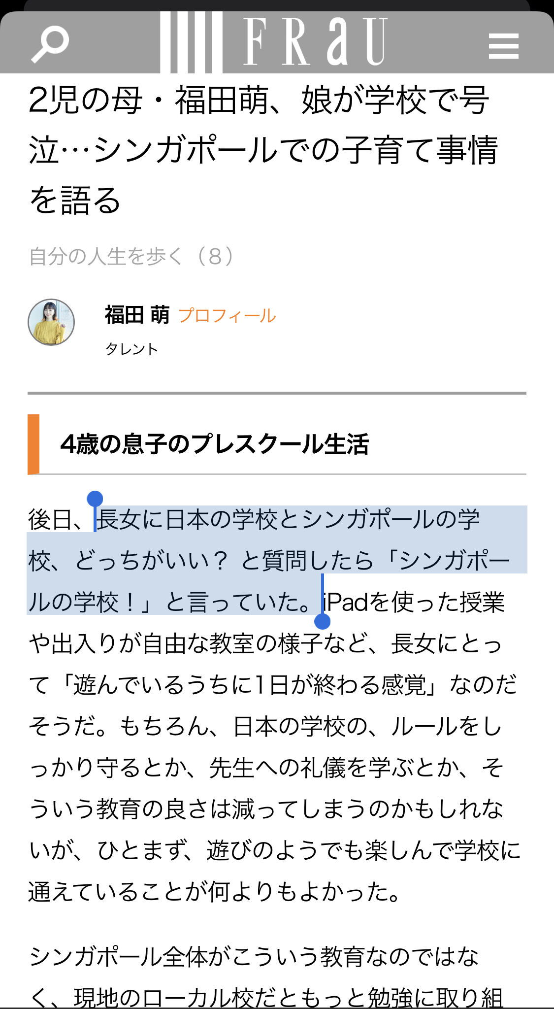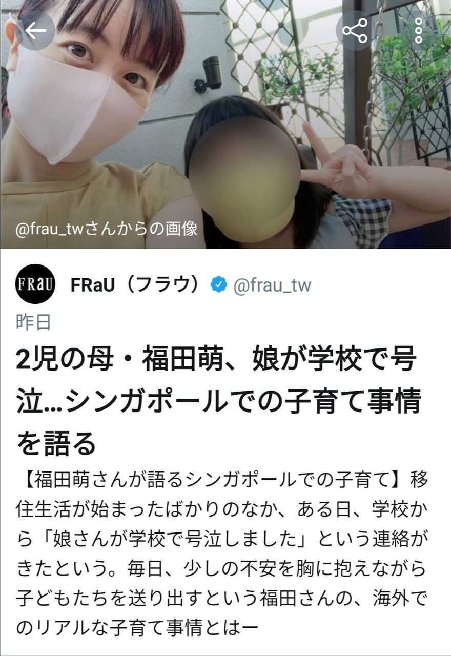 2児の母・福田萌、娘が学校で号泣…シンガポールでの子育て事情を語る