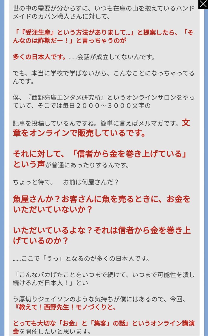 結局は西野のファンクラブで西野のことが好きで西野に金落としたい人が参加してるんやから