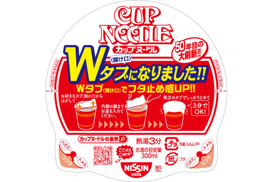 日清食品株式会社 (社長:安藤 徳隆) は、「カップヌードル DO IT NOW!」プロジェクトの一環として、プラスチック原料の使用量削減のため “フタ止めシール” を廃止するとともに、シールがなくてもしっかり止められるよう開け口を2つにした新形状のフタ “Wタブ” を採用し、2021年6月から順次切り替えます。
