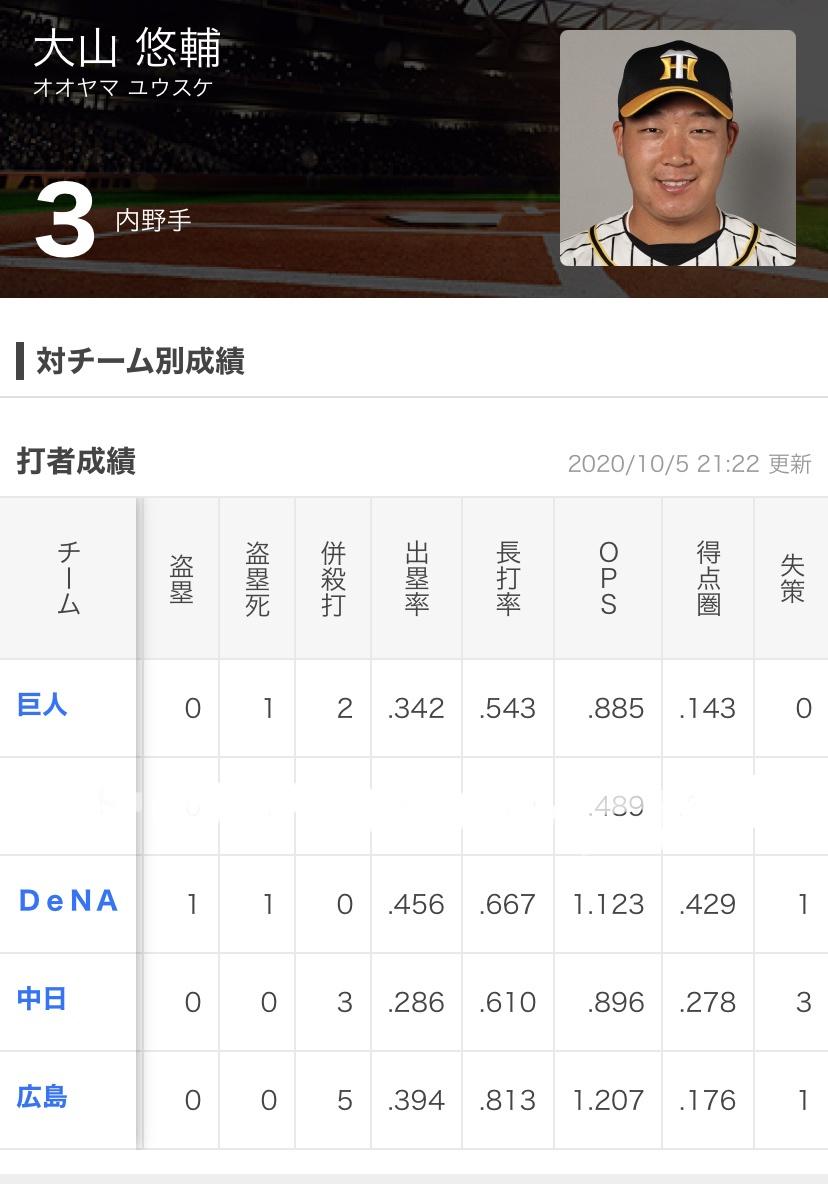 今シーズンの大山の成績