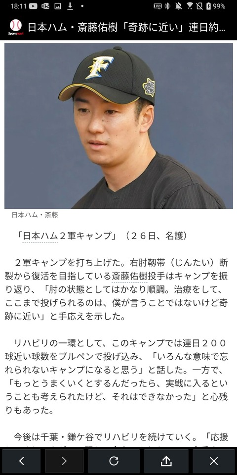 今後については、「確認の毎日毎日になるかな。あしたどうなっているか、あさってどうなっているかっていうところかなと思います。今のところは今日のピッチングを回避したというところまでしか、なんとも言えないですね」と話した。