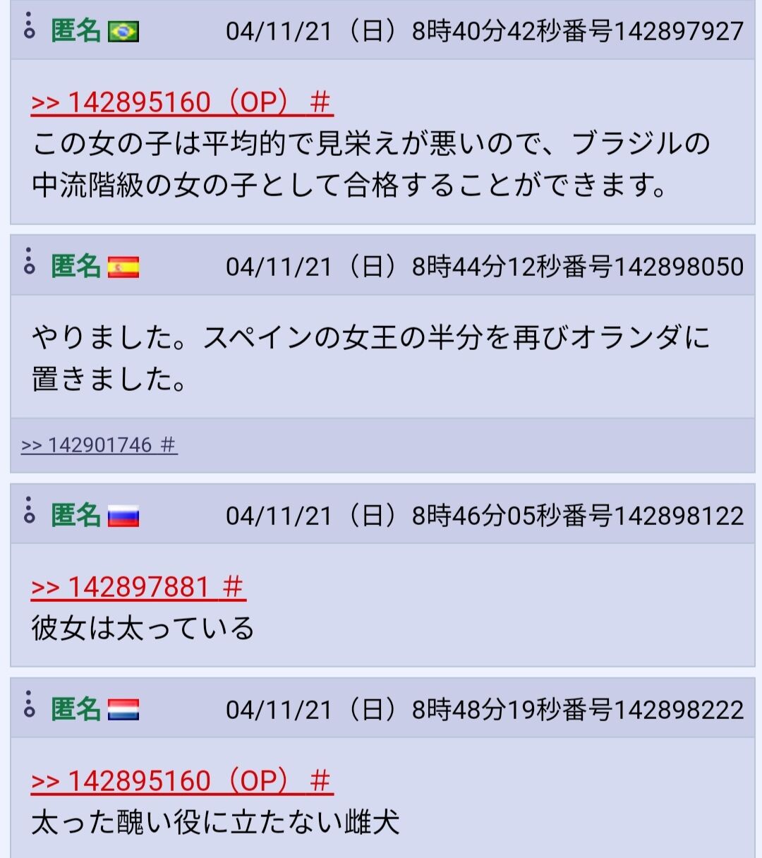 国の代表を豚だとかブスだとかひどい掲示板があるもんだな