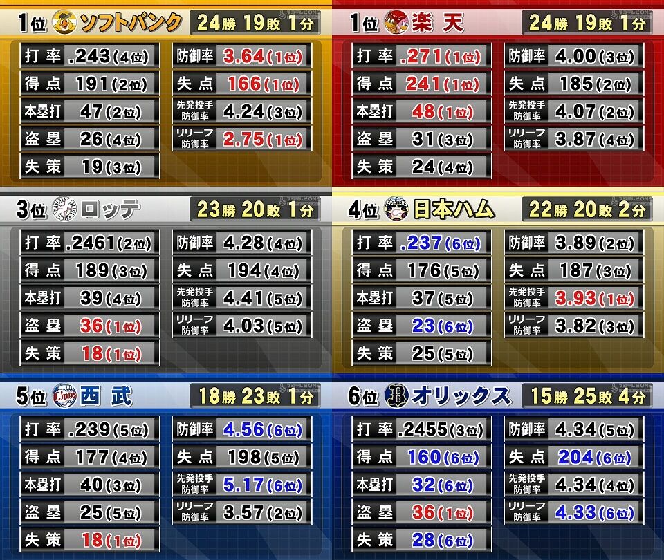 オリックス戦だけで貯金9もあるロッテが首位じゃないのはなんで?