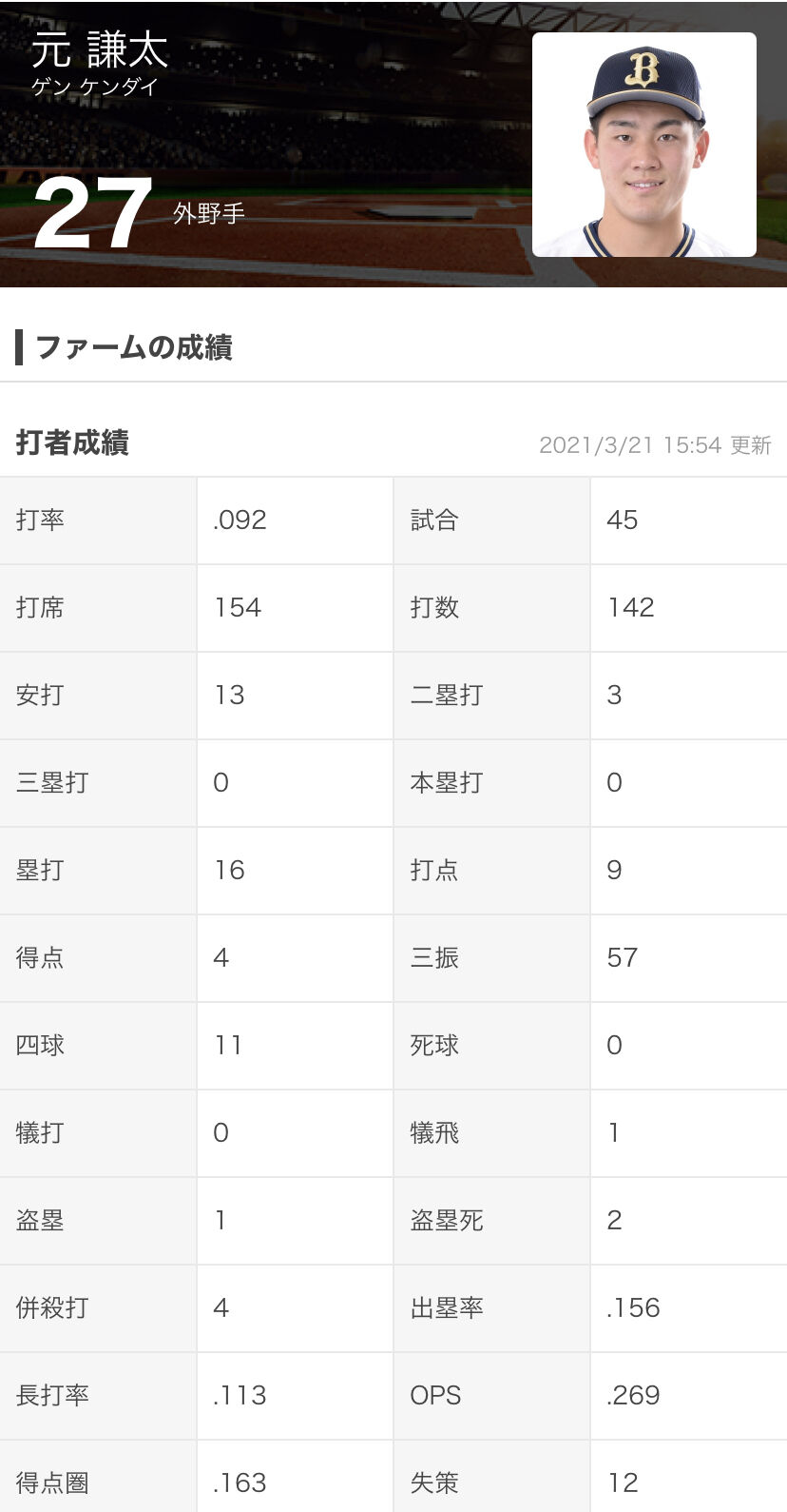 3年目 オリックス復帰も2軍にほぼ出場せずクビ