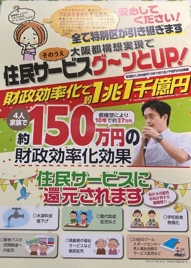 維新は確かに敬老パスの負担増や公共施設の統廃合もやったけど、本当に市民にとって大切なことは過剰な高齢福祉や箱モノへの補助なのか、現役世代への適切な福祉なのか、改めて考えてほしい