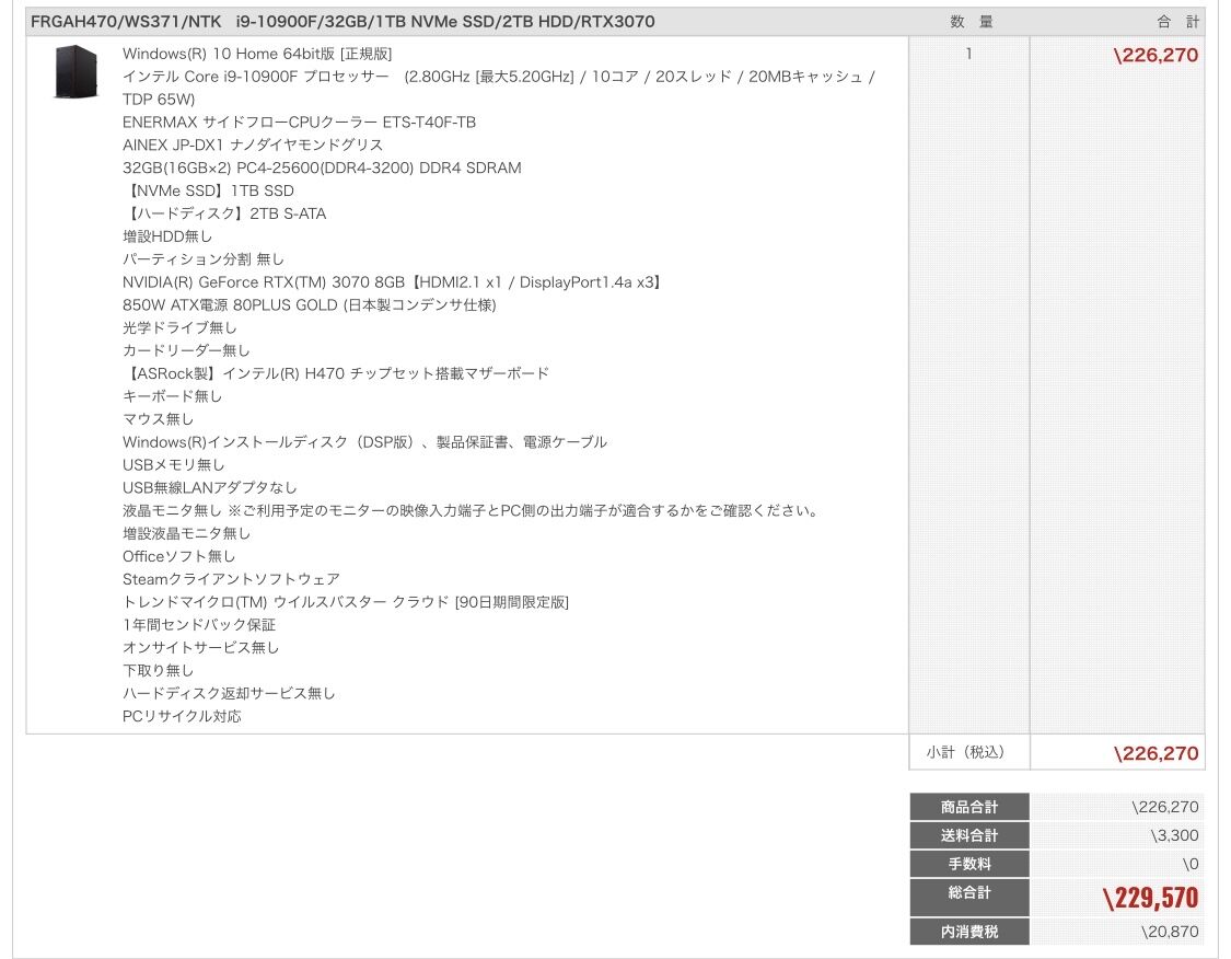 これ系のBTOって選択でけへんパーツがゴミクソなんよな